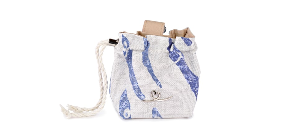 Zum Verschließen kann man einerseits einen Magnetknopf nutzen, was eine schnelle Entnahme der Leckerlis gewährleistet, oder man nutzt das Baumwollseil mit silbernem Stopper zum Zuziehen und