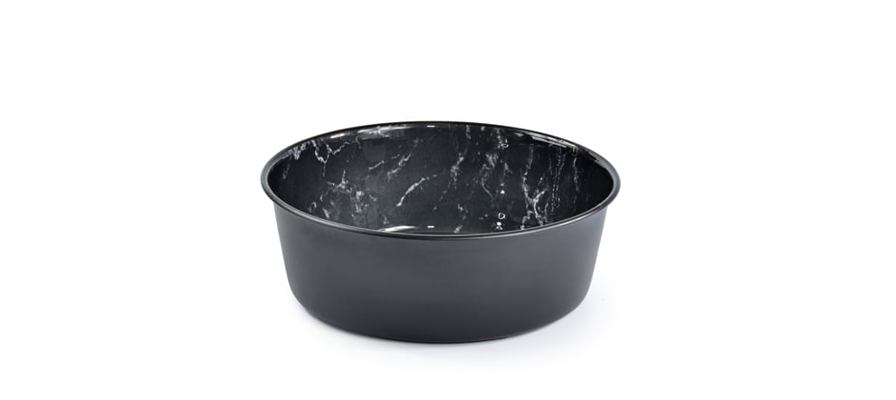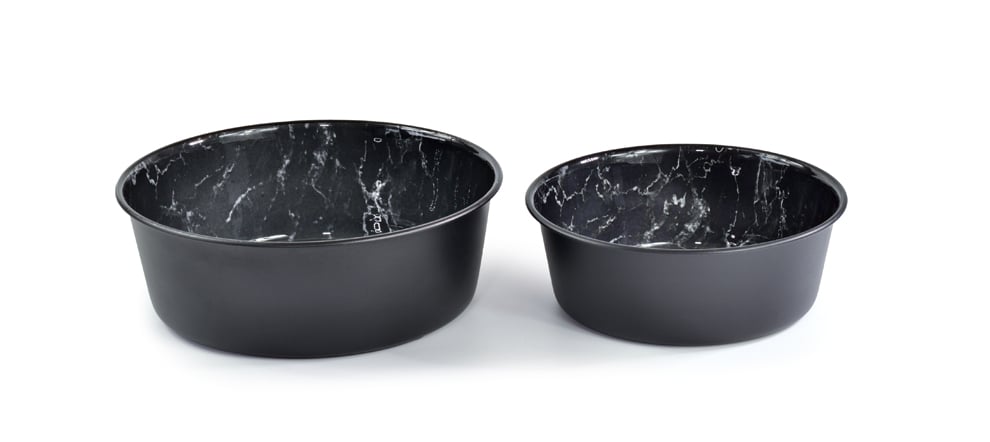 gleichzeitig glänzend-luxuriöse Marmoroptik. Dieser Hundenapf besteht aus rostfreiem Edelstahl, so dass er leicht zu reinigen ist und den Geruch des Futters absorbiert. Er besitzt rutschfeste
