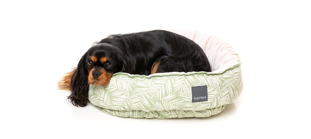 Das grüne Wendebett „Palmetto“ bringt frisches Design mit Palmen-Muster, gepaart mit kuscheligem Komfort für Deinen Hund, direkt in Dein Zuhause. Beide Seiten sind verwendbar. Eine samtig-Weiche für die kühleren Tage und eine Atmungsaktiv für den Sommer. Die ovale Form, mit extra dicker Polsterung an der Rückseite, stützt perfekt, egal wie Dein Vierbeiner am liebsten schlummert. Mit der super soften Füllung und plüschigen Oberfläche, schläft Dein Hund fast wie auf einem Marshmallow. Das Bett ist waschbar, langlebig und natürlich hypoallergen. Stylisch, praktisch, cozy – das neue Lieblingsbett für Deinen Hund.