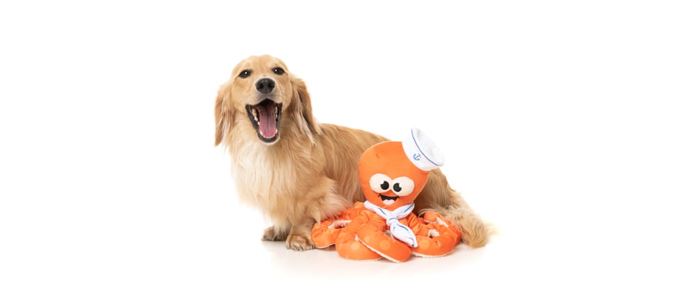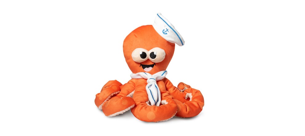 Ob große oder kleine Hundeschnauze, „Sailor Squiggles“ bietet viele Angriffsmöglichkeiten und wackelnd-bewegliche Elemente zum Herumtoben. Wie es sich für einen Oktopus gehört, ist seine Unterseite leicht strukturiert. Er ist farbsicher, ungiftig und nicht allergen. Also der perfekte gute Laune Spielepartner. Schiff ahoi!