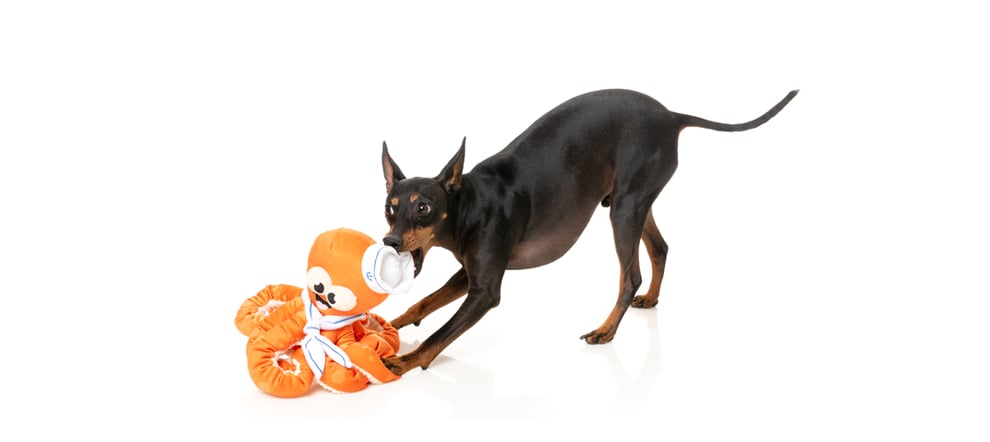 „Sailor Squiggles“ bietet flexible Möglichkeiten zum bespielen und beschäftigen Deines Hundes. Dazu besitzt der lustige Kerl einen dicken plüschigen Kopf mit Seemannsmütze und vor allem federnd-elastische Tentakeln, welche herrlich zum Herumschubsen mit den Pfoten, zum Werfen, oder Apportieren sind.