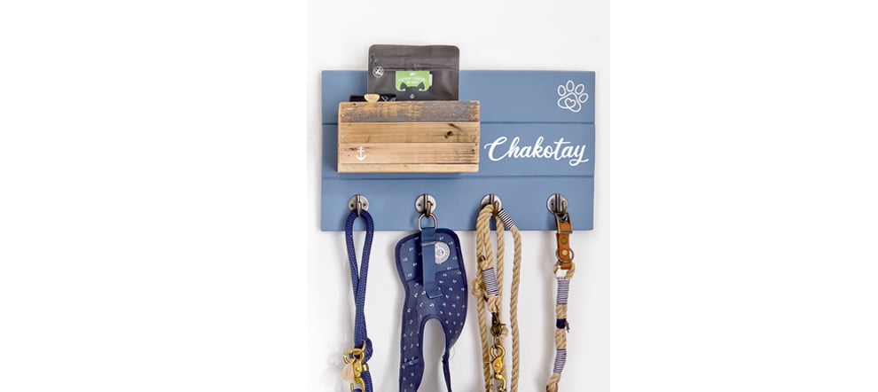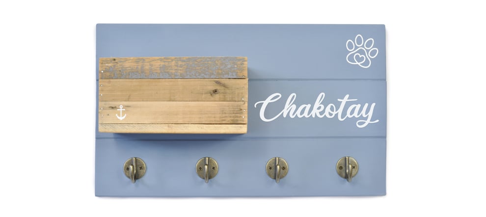 Unsere hundestrand Hundegarderobe „Ankerplatz“ ist in Handarbeit aus Holz gefertigt und die perfekte Möglichkeit die Leinen, Halsbänder oder Geschirre Deines Hundes stilvoll aufzubewahren. Zusätzlich kannst Du in der Vintage-Kiste Utensilien, wie Leckerlies und Kotbeutel, unterbringen. Jede Holzkiste ist ein Unikat. Mit dem Namen Deines Hundes personalisiert, kommt der Strandlook direkt in Deine Wohnung.