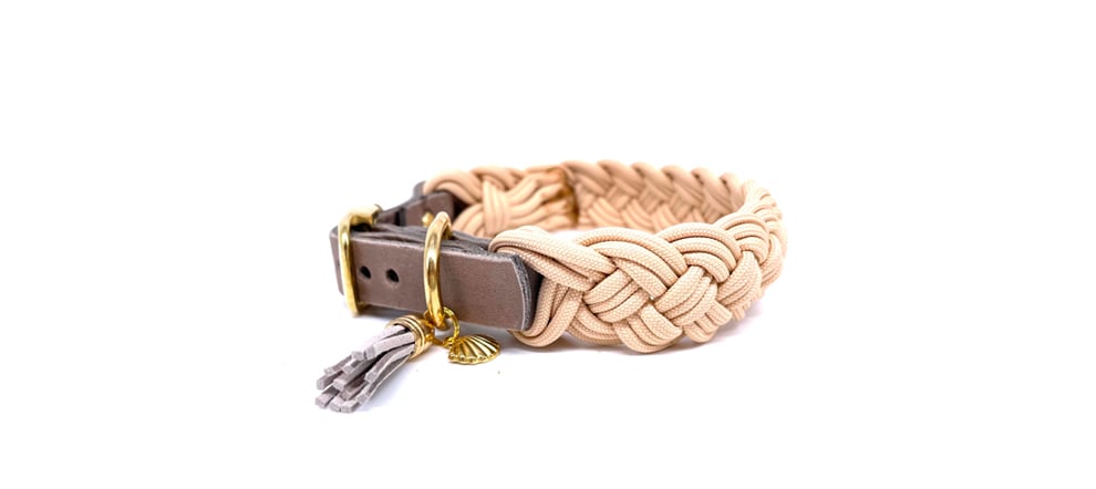 „Café au Lait“ wirkt von der Farbgebung her zwar dezent, geht aber auf den zweiten Blick in die Vollen. Die dunkle Fettlederleine im Kontrast zu Beige, sind das Eine. Das geflochtene Paracrodhalsband mit Lederverschluss auf der anderen Seite sucht seinesgleichen. Ein in Handarbeit gefertigtes Schmuckstück. An Deinem Hund, für einen ausgiebigen Spaziergang und den anschließenden Kaffee am Strand.