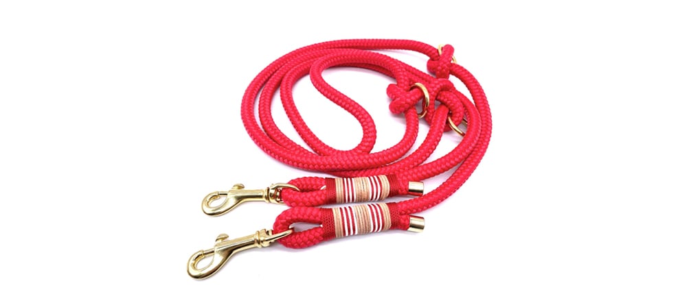 Die Hundeleine ist 200 cm lang und in 8 oder 10 mm Seildicke erhältlich. Durch die Ringe ist sie 3-fach