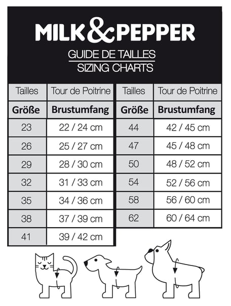 Milk & Pepper ist eine kleine französische Marke, die 2009 von Art Director Sylvain Brejon gegründet wurde. Sie gilt als Referenz in der Welt schicker Accessoires für Hunde. Jede Saison entwickelt Milk & Pepper neue Kollektionen mit Trend- (Milk) oder Rock'n'Roll-Akzenten (Pepper), die von der aktuellen Mode- und Einrichtungstrends inspiriert sind. Mit maßgeschneidertem und originellem Sortiment für kleine Hunde, wie z.B. Bulldoggen, Jack Russel oder Möpse, vereint Milk & Pepper durch seine Kreationen Style und Komfort.