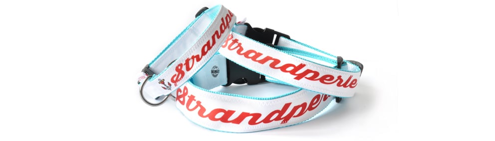 Das Hundehalsband „Strandperle“ ist ein leichtes und nachhaltig produziertes Halsband mit angenehmen Tragekomfort. Es besteht aus original Segelstoff und ist, zusammen mit Applikationen aus rostfreiem Edelstahl, salzwasserfest.
