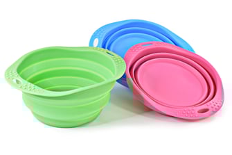 Diese faltbaren Reisenäpfe sind bei jeder Reise oder Wanderung ein praktischer Begleiter. Durch die Öse kannst Du die Silikonnäpfe ganz einfach z. B. mit einem Karabiner an Deinem Rucksack befestigen. Erhältlich in 3 Farben.